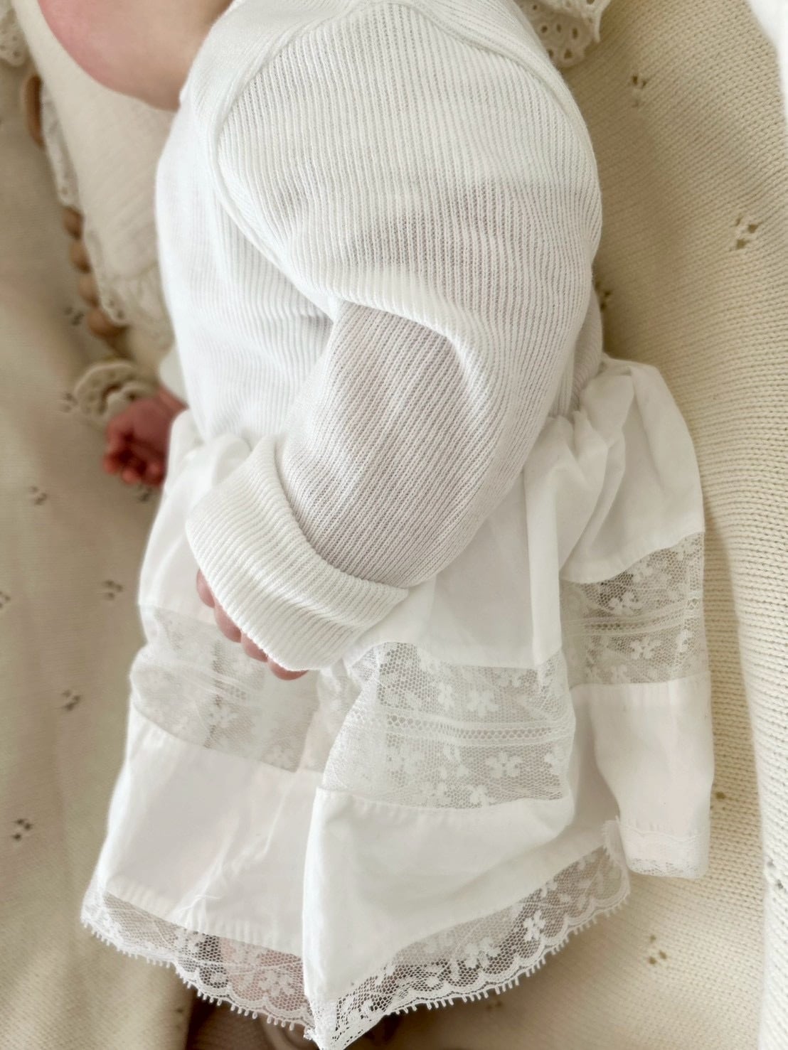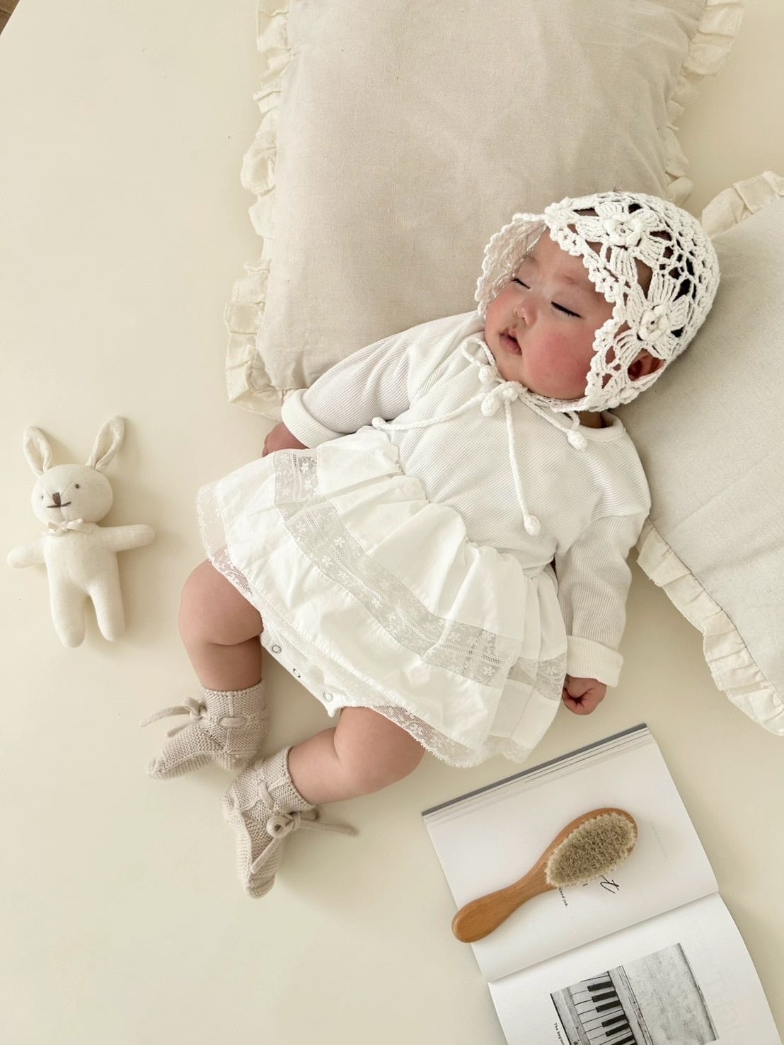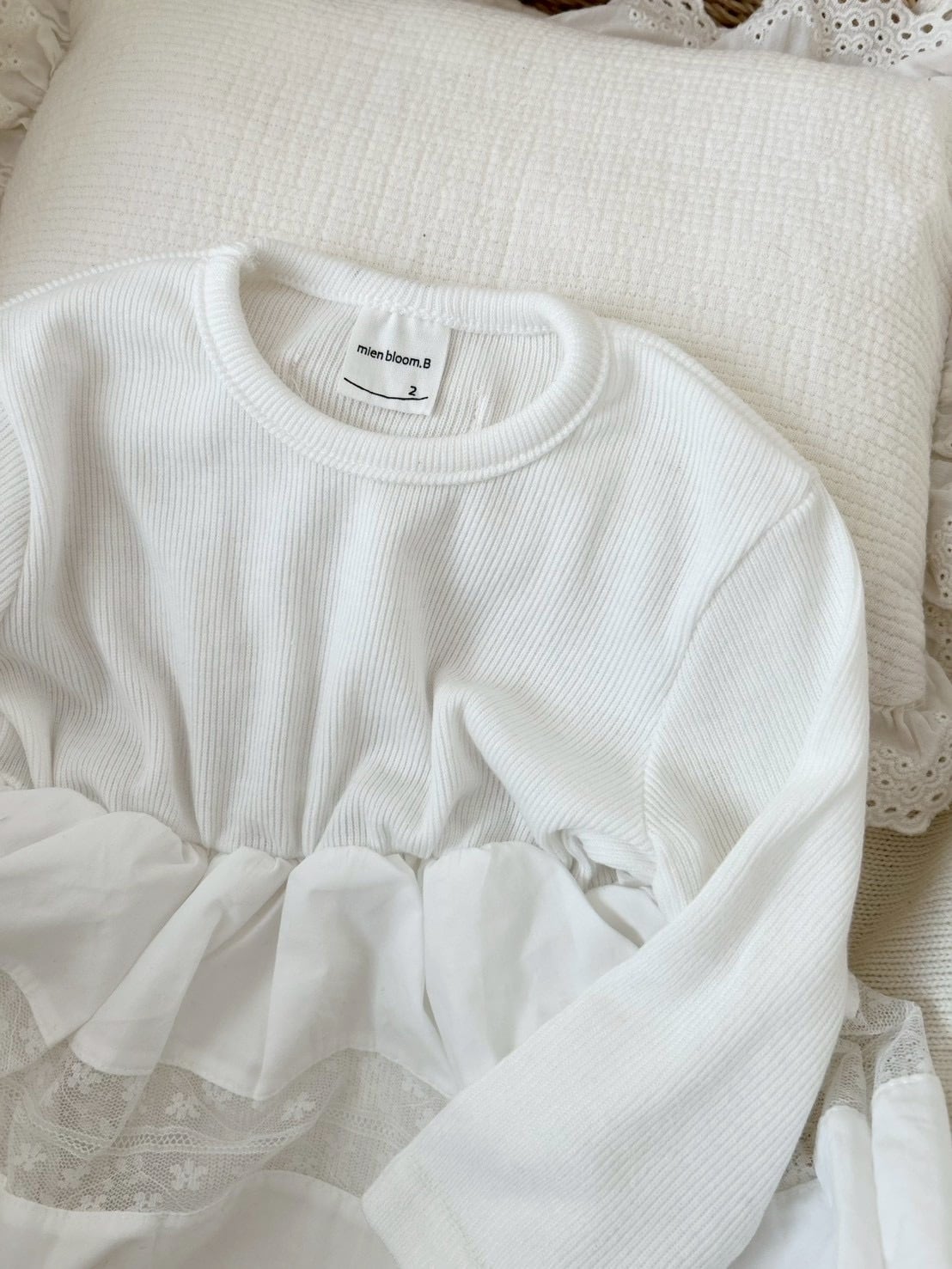 *即納完売後はお取り寄せ枠のご購入をおすすめいたします。 再販ご希望の方は、再販通知が届くようお気に入り登録をお願い致します。 カラー:アイボリー 平置きサイズ(㎝) サイズ/着丈/身幅/袖丈 1号(0‐6m相当) /33.5/20.5/22 2号(6ー12m相当) /38.5/22.5/24 3号(12‐18m相当) /41.5/23.5/26.5 model 0y4m / 54cm / 2号size着用