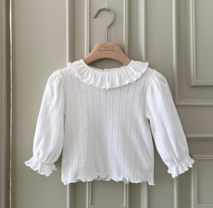 *即納完売後はお取り寄せ枠のご購入をおすすめいたします。 再販ご希望の方は、再販通知が届くようお気に入り登録をお願い致します。 カラー:アイボリー 素材:コットン100% 平置きサイズ(㎝) サイズ/着丈/身幅/袖丈 S(1~2Y) /32.5/25/26.5 M(3~4Y) /37/27.5/31 L(5~6Y)/43/30.5/37 XL(7~8Y) /44/31.5/40 model 2y7m / 88cm / Msize着用