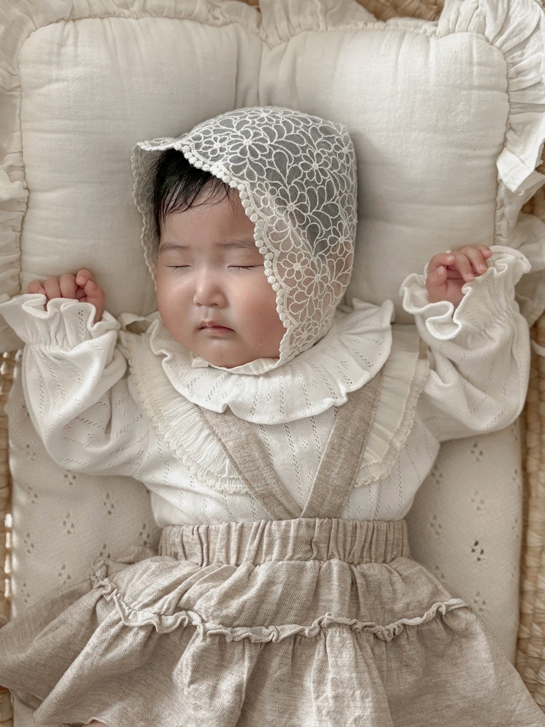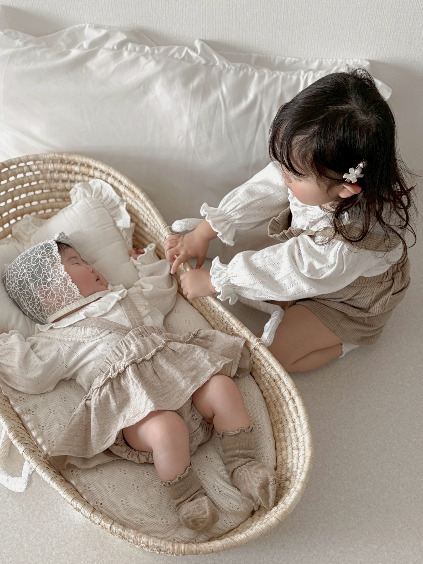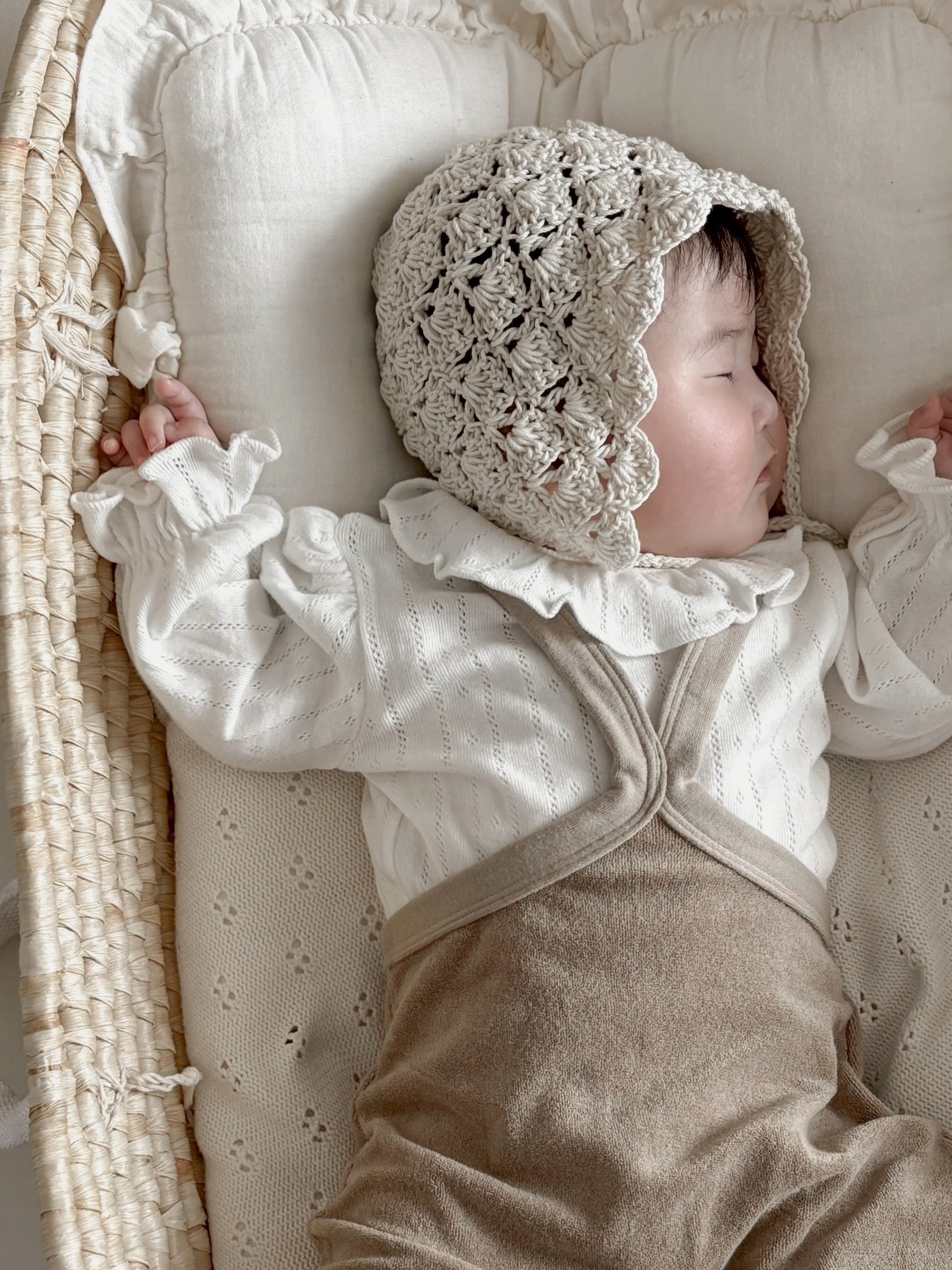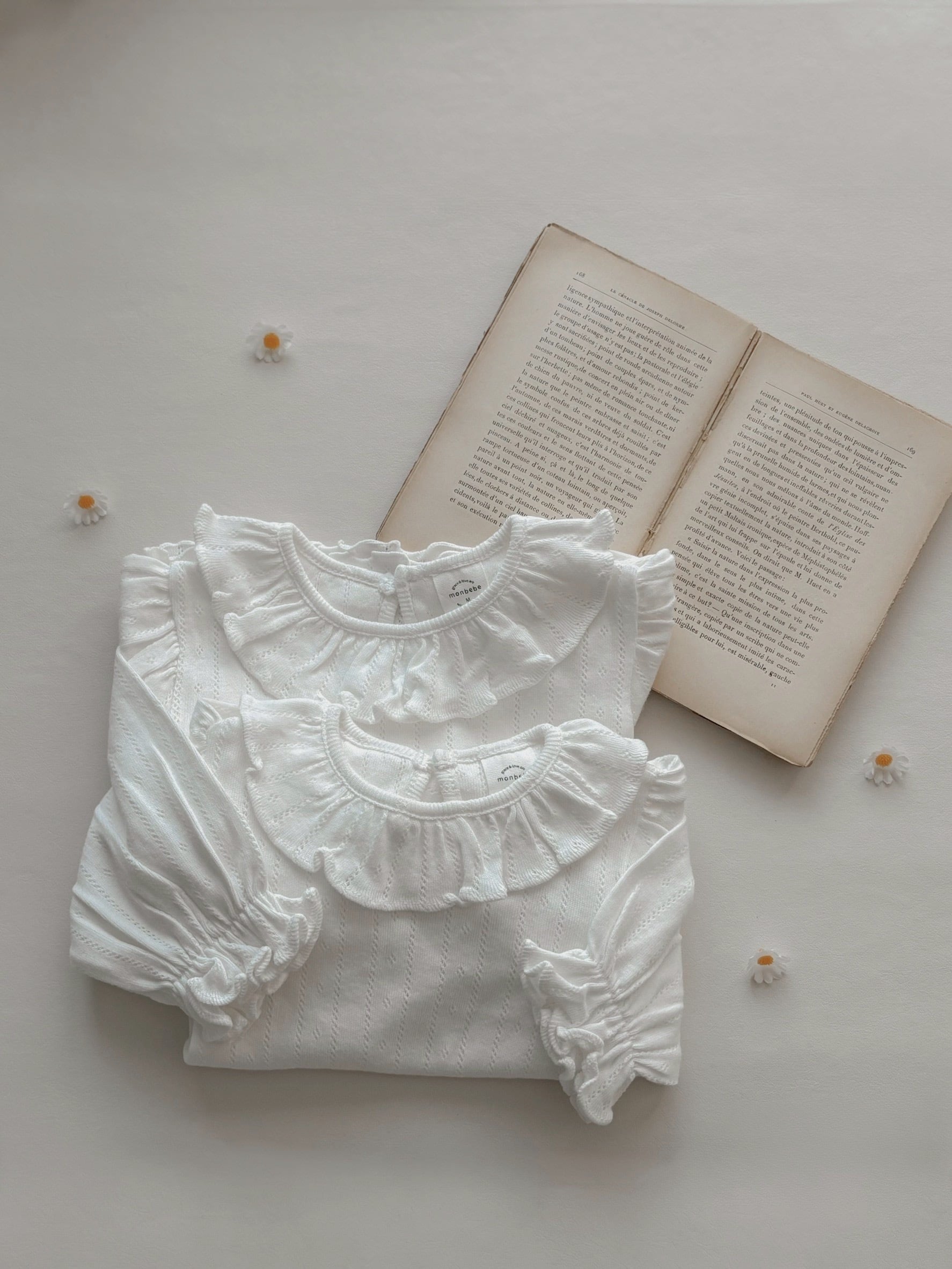 *即納完売後はお取り寄せ枠のご購入をおすすめいたします。 再販ご希望の方は、再販通知が届くようお気に入り登録をお願い致します。 カラー:アイボリー 素材:コットン100% 平置きサイズ(㎝) サイズ/着丈/身幅/袖丈 M(6ー12M) /38/23/22.5 L(12‐24M)/41/24/25 model 0y5m / 61cm / Msize